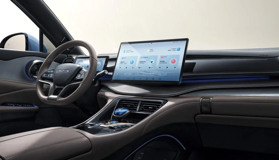 智能化方面,护卫舰07全系标配5G通讯技术的DiLink智能网联系统和15.6英寸自适应旋转悬浮Pad,UI设计、智能语音均全面升级,支持可见即可说、20秒连续对话、四音区唤醒,还有媲美真人的AI声音,为家庭用户提供“更便捷、更人性化”的智能座舱体验。同时,护卫舰07高配车型还配备了HiFi级定制丹拿音响,带来影院级和音乐厅般的临场聆听体验。