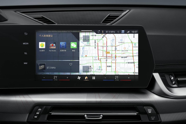 得益于第9代(BMW)操作系统的巧控浮窗设计,驾驶员可以实现快速、便捷的访问。主屏幕以宝马导航为背景,支持用户在查看导航信息的同时实现其他功能操作。地图界面基于中国用户使用习惯设计,可以自适应日间、夜间的行驶需要,视觉体验更加专注、明亮、清晰。同时宝马在功能的入口逻辑上也进行了优化,应用程序、车辆设置的入口更加直观。菜单上的应用程序还可以根据用户的使用习惯和偏好自行调整。