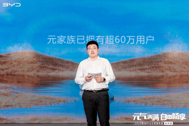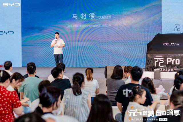 活动伊始,比亚迪王朝网中部战区湖南大区的大区经理马湘徽登台致辞,表示买车没负担,用车成本低,驾驶体验好,是“元家族”超60万用户认可的核心价值,也是2023款元Pro与生俱来的优势,并向大家分享了比亚迪在新能源汽车领域的美好展望和傲人成绩。