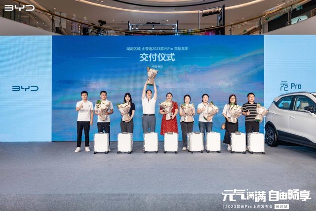 在现场媒体以及众多观众的见证下,湖南首批2023款元Pro车主也登上舞台进行了隆重的交车仪式,正式开启元气满满的美好生活。